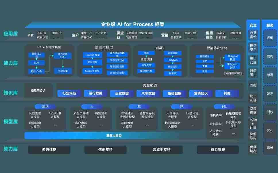 端到端的一站式AI工作空间深度融合了从企业战略规划到日常经营的全流程业务板块,,定向解决车企内部领域多、、、、部门多、、、链条长、、、、场景碎片化等难题,,,支持车企快速构建以AI为核心的生产力写作体系,,,实现任务执行与AI能力的无缝集成与交互